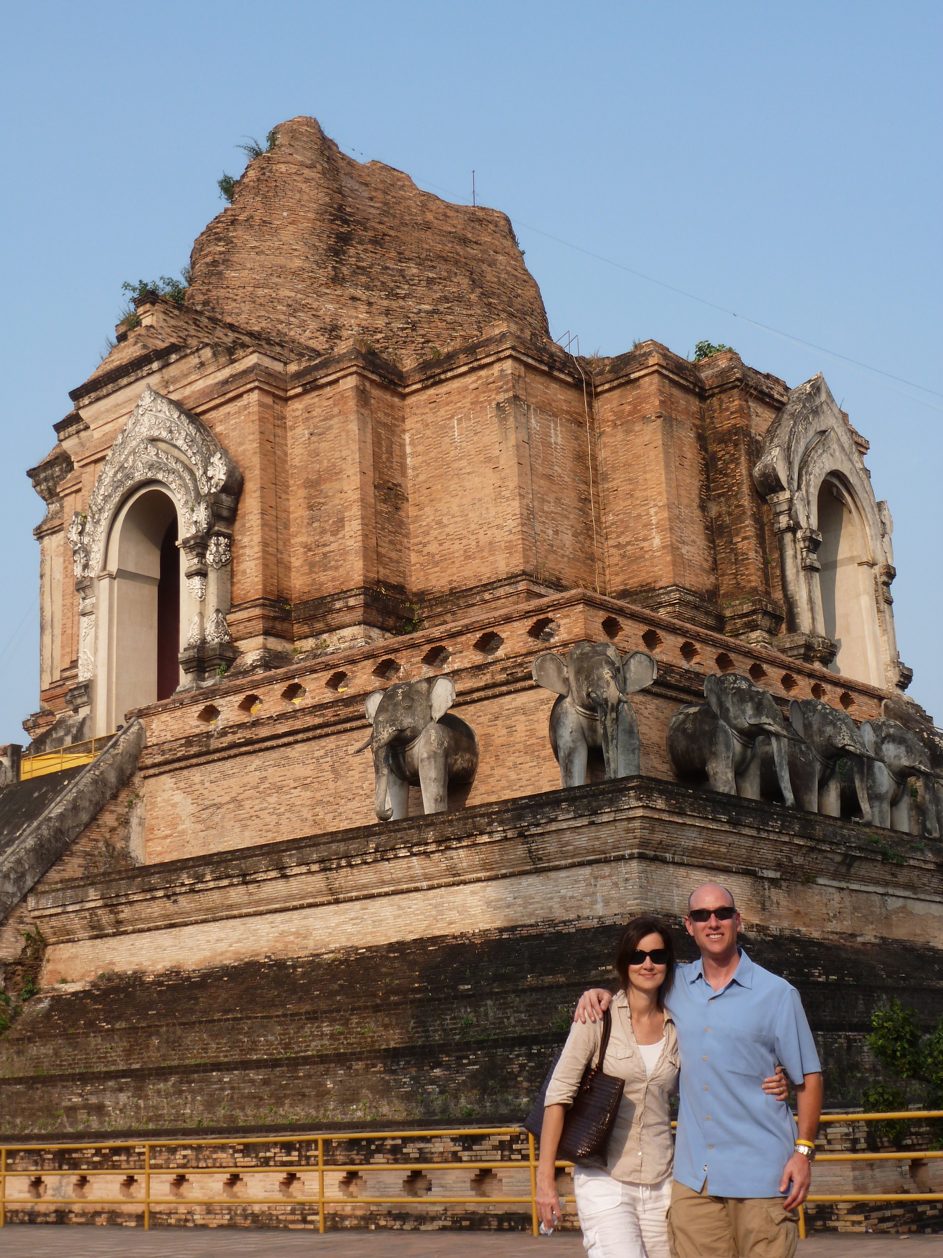 For me, the most fascinating structure I saw was Wat Chedi Luang (วัดเจดีย์หลวง) and its immense stone chedi with elephant torsos sticking out the sides and once held the Emerald Buddha (now in Wat Phra Kaew in Bangkok). The partially crumbled chedi with vegetation growing out of the stone only adds to its exotic feel.