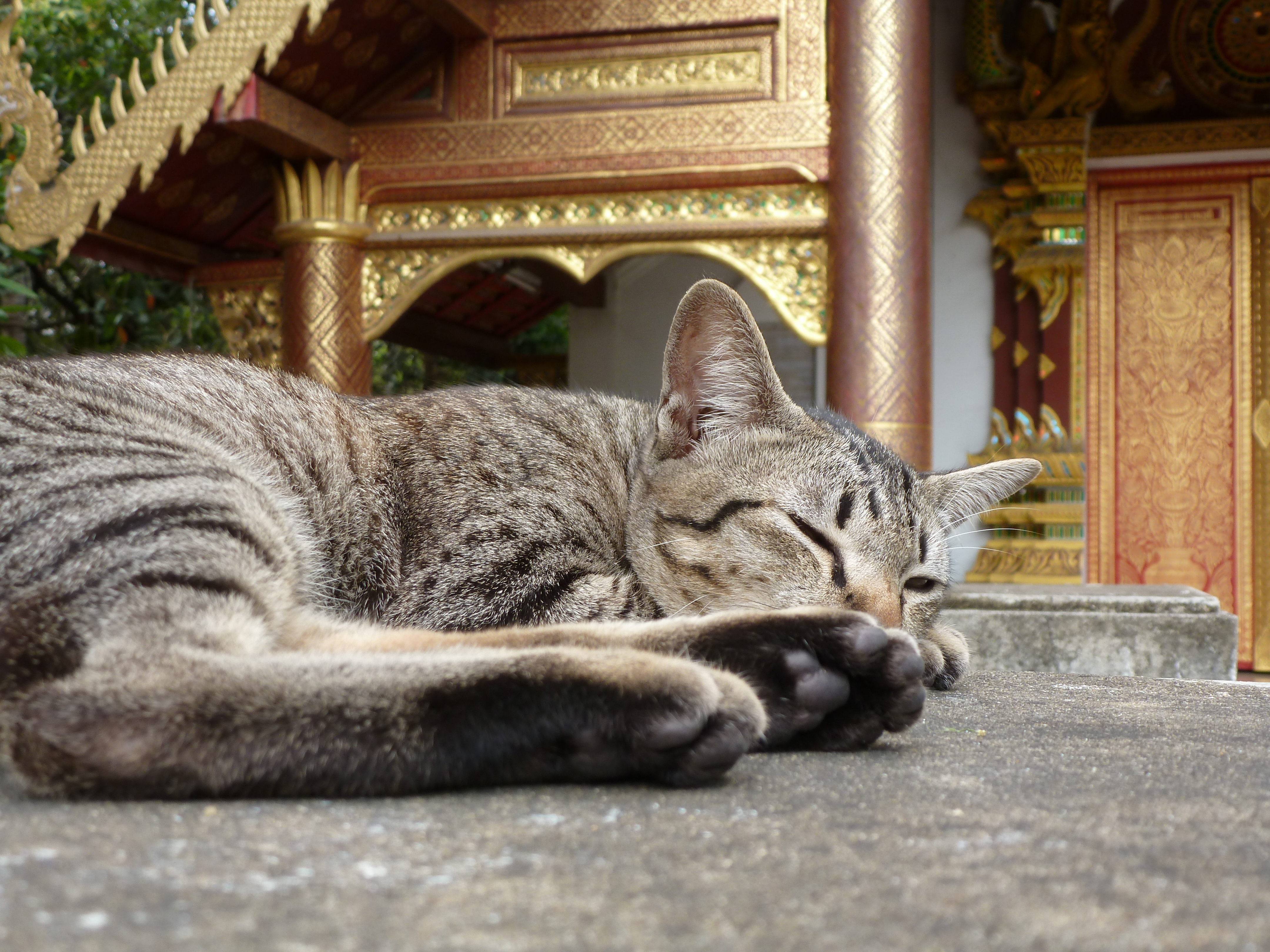 More temples followed. To us, it seemed that the Bangkok temples were more museum-like and less like working temples, but in Chiang Mai we saw monks on the grounds as well as cats.