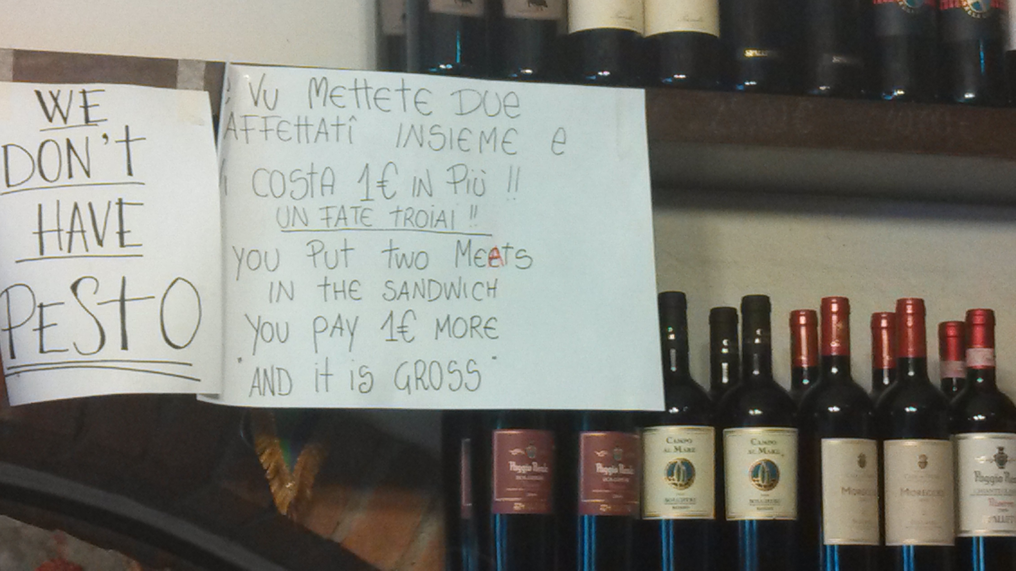 One of our lunches was at All’Antico Vinaio, a tiny place that you walk up to the counter and order. There always seems to be a line there! They serve sandwiches on foccachia and you tell them what meat you want and any additional item. Prices are so good you’ll want to buy two, but these are big sandwiches and one was plenty.