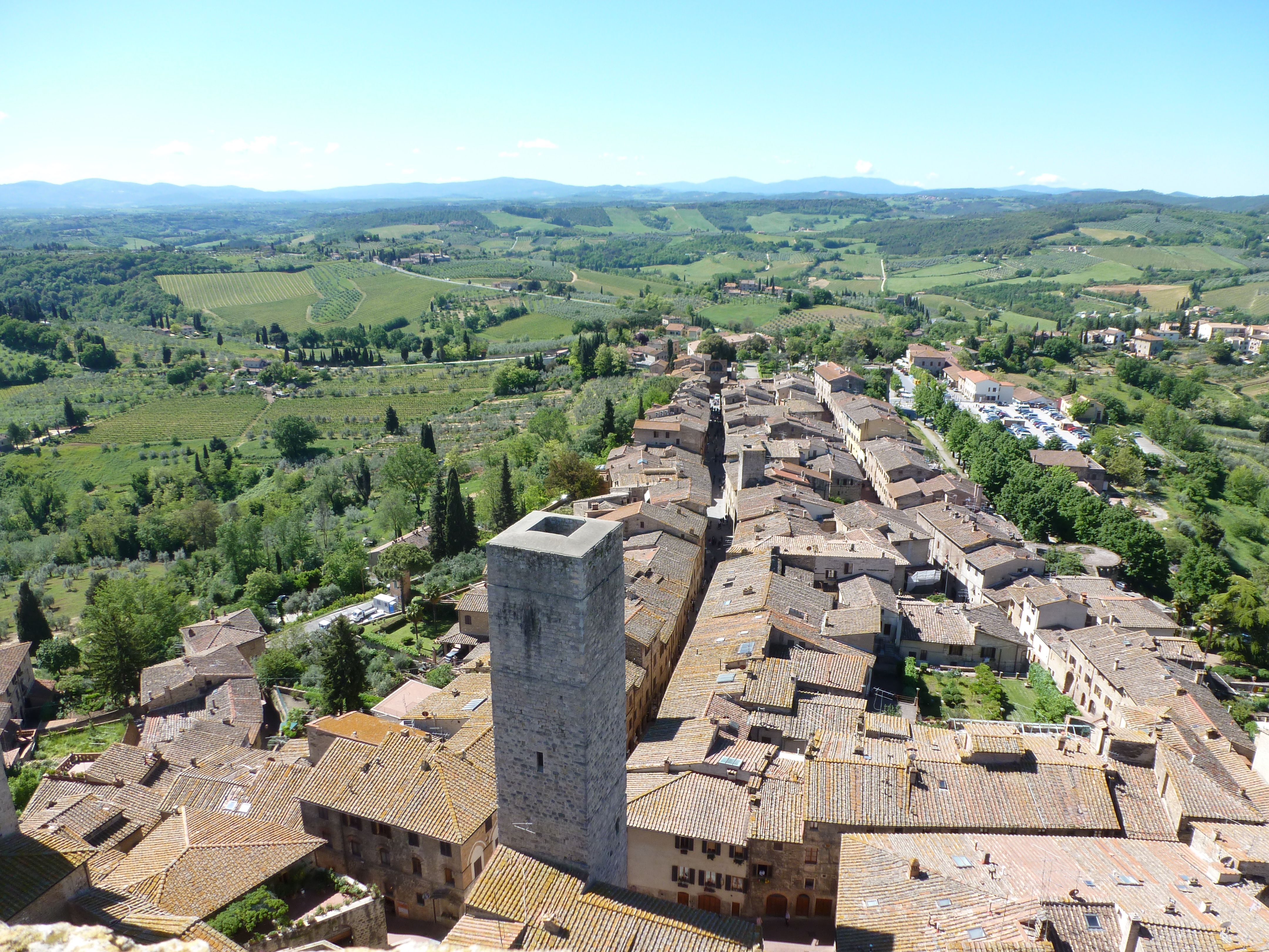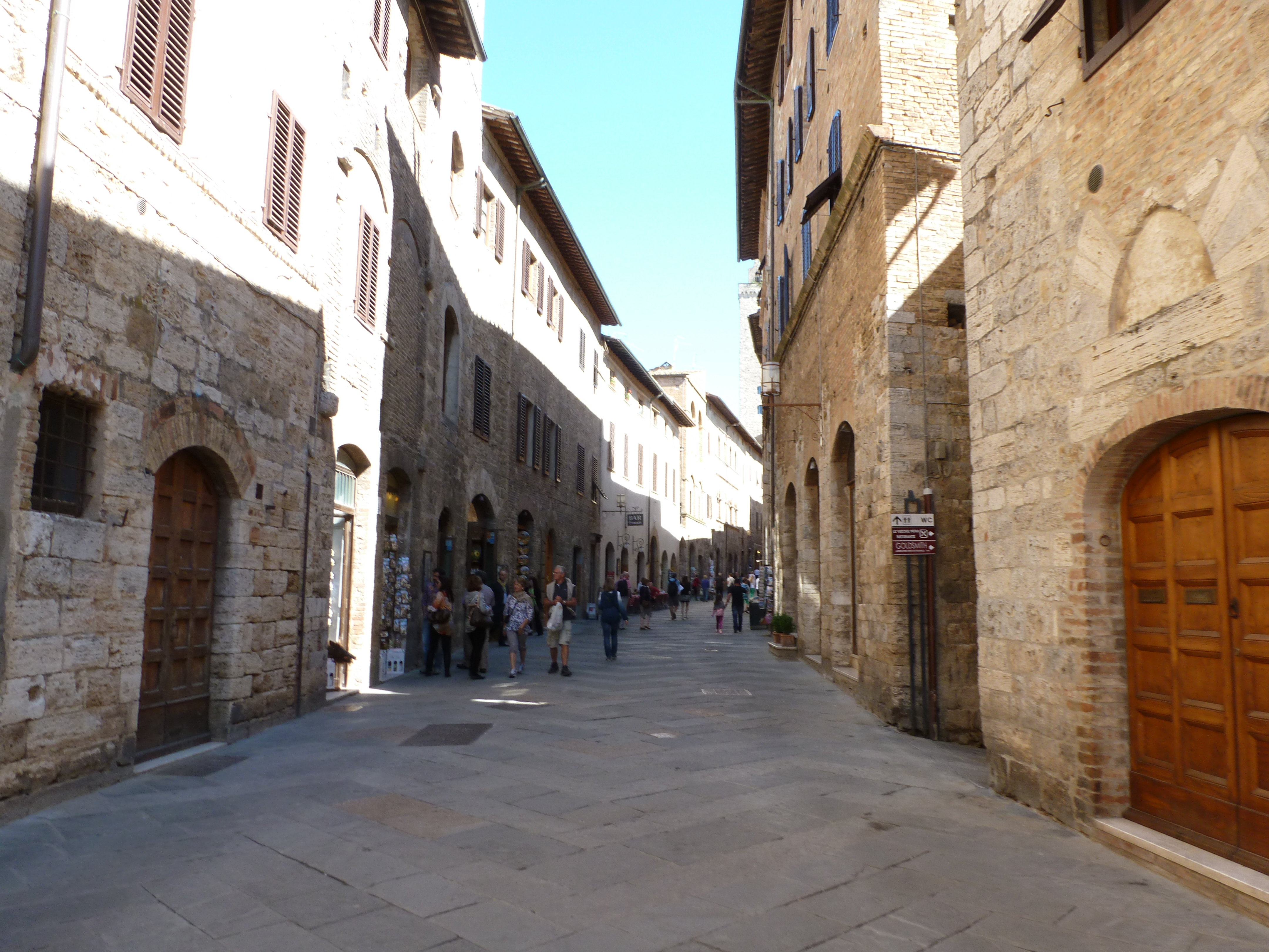 Next day was a day trip by car with Marco, our guide for the day with his company, Tuscany Tours. He picked us up at the hotel, and drove first to San Gimignano, a charming, medieval town on a hill with beautiful stone buildings and many towers. Unfortunately over time, some have been lost, but we did climb up one of the largest remaining towers, where after the rains the views were endless and we even could see all the way to the Apinines with snow on them. The climb up is reasonable enough except for the last part which requires going up a ladder – unfortunately not really something for those that have a hard time walking. Marco had dropped us off allowing us to walk the town on our own and picked us up for the next part of our day trip. We loved San Gimignano with its shops and restaurants all within the car free streets.