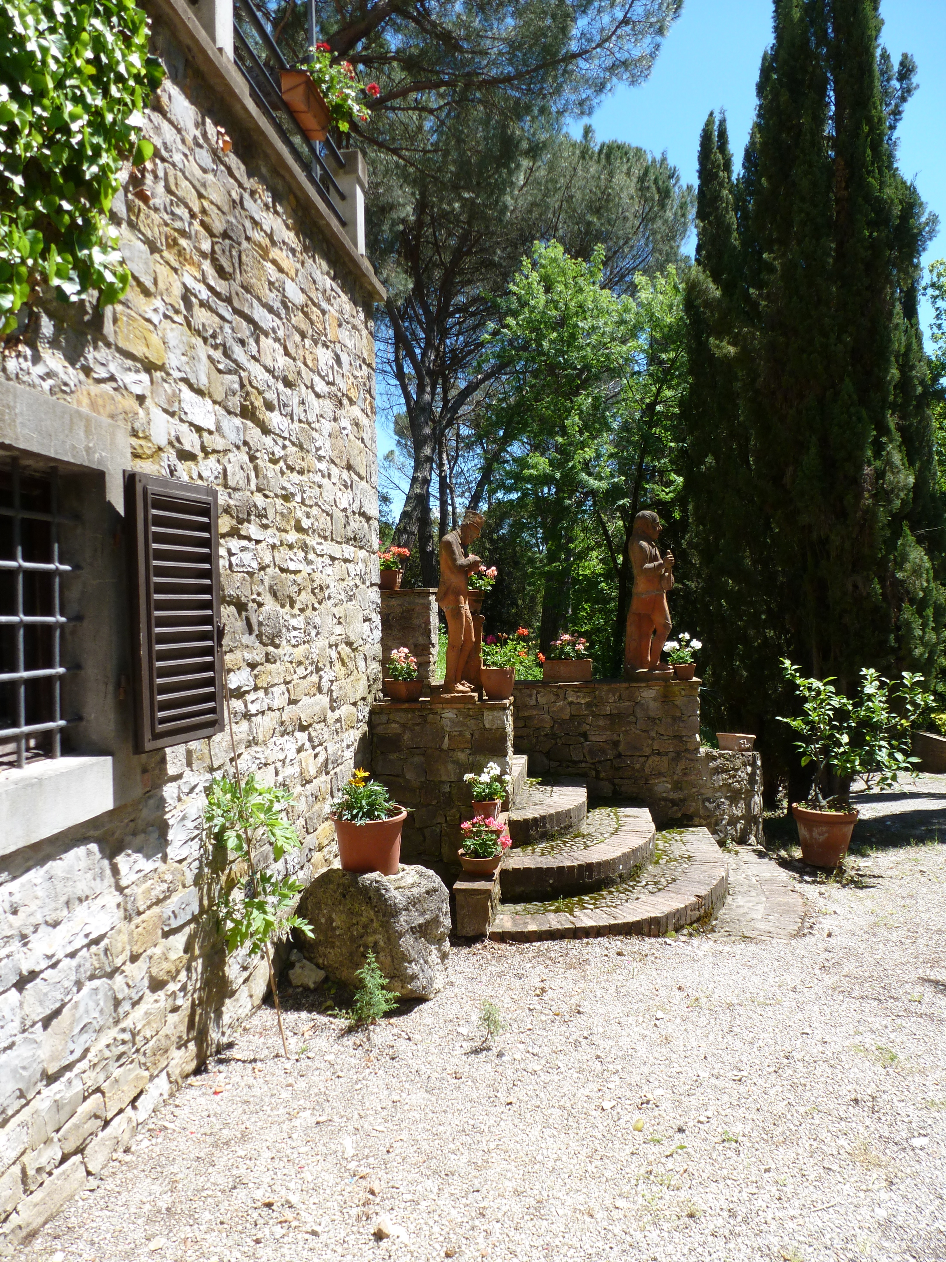 Next, we headed to Monterinaldi winery for lunch and a tour. The short drive was over the rolling hills, spring green from the recent rains, that are so typical of Tuscany. Sara, our tour guide at Monternaldi, walked with us explaining their wines, their history, and then took us to our private room for wine tasting and food. We could not ask for a better day, and Marco’s expert care made it all the more special. Thank you Marco!